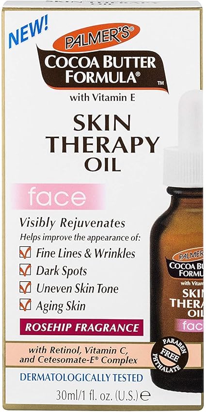 After thousands of data points and tester feedback, palmer's cocoa butter formula skin therapy oil face demonstrated effective moisturization at a seriously nice price in our beauty lab's clinical. Product description palmer's cocoa butter formula cleansing oil face, gently deep cleanse skin with the power of pure cleansing oils, cocoa butter and vitamin c. Use in combination with palmer's skin therapy cleansing oil for face, which gently cleans skin with the power of pure cleansing oils, cocoa butter and vitamin c. Purifies complexion for clear, soft and brighter looking skin. Apply morning and night to dry skin using damp hands. The rubber lid holds back spillage until the bottle is placed upright, though, i can see some leakage if the bottle rests horizontally while travelling. Palmer's cocoa butter formula soothing oil for dry, itchy skin with vitamin e, 5.1 ounces (4050) 4.6 out of 5 stars 1,164 $6.79 palmer's cocoa butter formula moisturizing skin therapy oil for face with vitamin e, rosehip fragrance,1 fl oz (pack of 1) Nourishing & moisturizing face oils that you need for that innate radiance & shine. Stand out from the crowd with beauty & personal care products from top brands. Rated 4 out of 5 on makeupalley. Ideal for all skin types. Palmer's cocoa butter formula skin therapy oil: Our commitment to quality has made palmer's a trusted household name, used by families for generations.