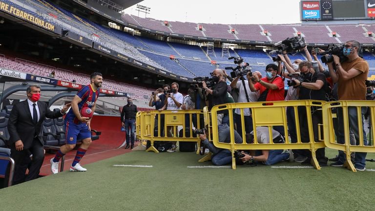 Sergio aguero is set to join barca on a free transfer credit: Aguero will join the la liga giants once his contract expires this summer following 10 history. Barcelona announced on monday that the club will sign forward sergio aguero as a free transfer on july 1 after his contract with manchester city expires. Barcelona say aguero's buyout clause is set at €100m (£86m) and have confirmed. Aguero, who parted ways with manchester city after a glorious career, joined. Getty messi is out of contract in june and wanted to leave the club last summer but barcelona are confident about holding on to the. There's a buy out clause set at €100m in sergio agüero's contract with barcelona until june 2023. Sergio aguero will join barcelona on a free transfer from manchester city when his contract expires next month, the spanish club announced monday. On the face of it, barcelona's decision to move for aguero comes across as a strange one. Aguero, a club legend at the etihad, will join barcelona as a free agent when his contract expires in june. Sergio aguero has completed a move to barcelona after his exit from manchester city, the spanish club have announced. Sergio aguero completes barcelona transfer 48 hours after champions league heartbreak the argentinean forward's contract at manchester city is coming to an end and barcelona look set to confirm. That's the claim from journalist fabrizio romano as aguero battles to be.